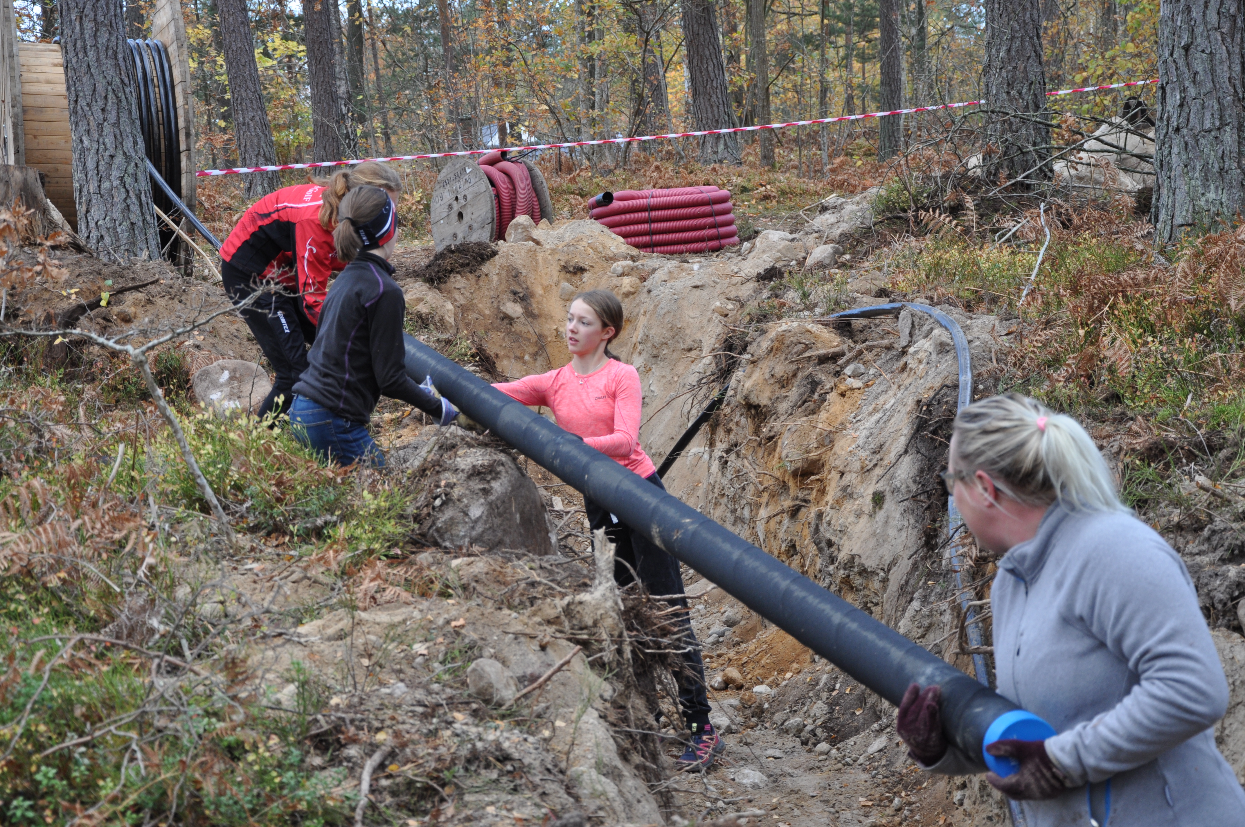 Förutom Silvergruppen så var det även flera vuxna som uppmärksammat kallelsen till ett lördagsryck med konstsnön. Ledningsgator skruvades ihop i de öppna schakten, en stenkista anlades och en brunn hann att sättas innan dagen var slut.